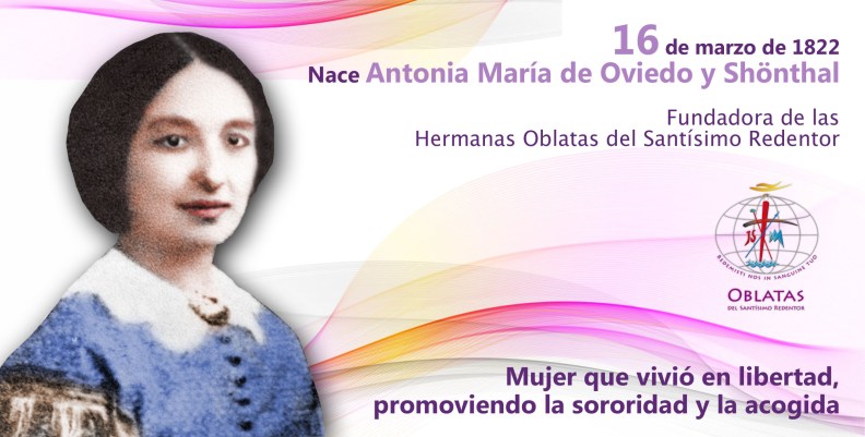 Hoy, 16 de Marzo, es un día muy especial para Nuestra Congregación, y para este Blog. La Familia Oblata celebramos el nacimiento de nuestra fundadora, Antonia María de Oviedo y Schönthal, mujer que dio vida a nuestra misión y carisma.