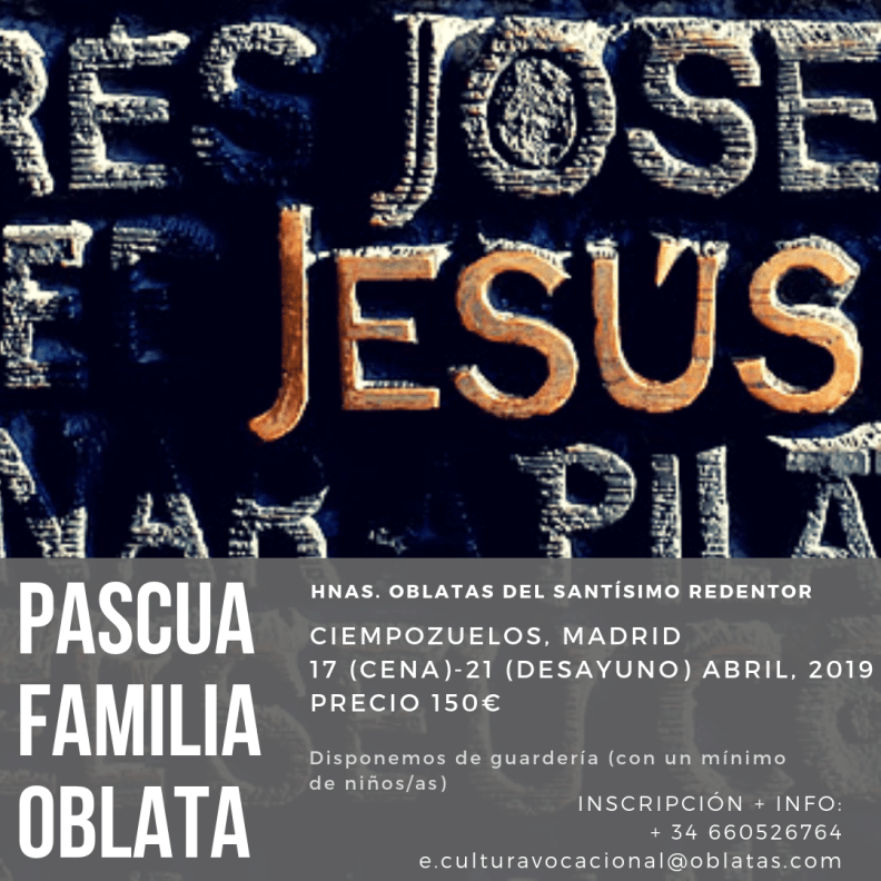 En Semana Santa celebraremos en nuestra Casa de Espiritualidad de Ciempozuelos la Pascua Familia Oblata.