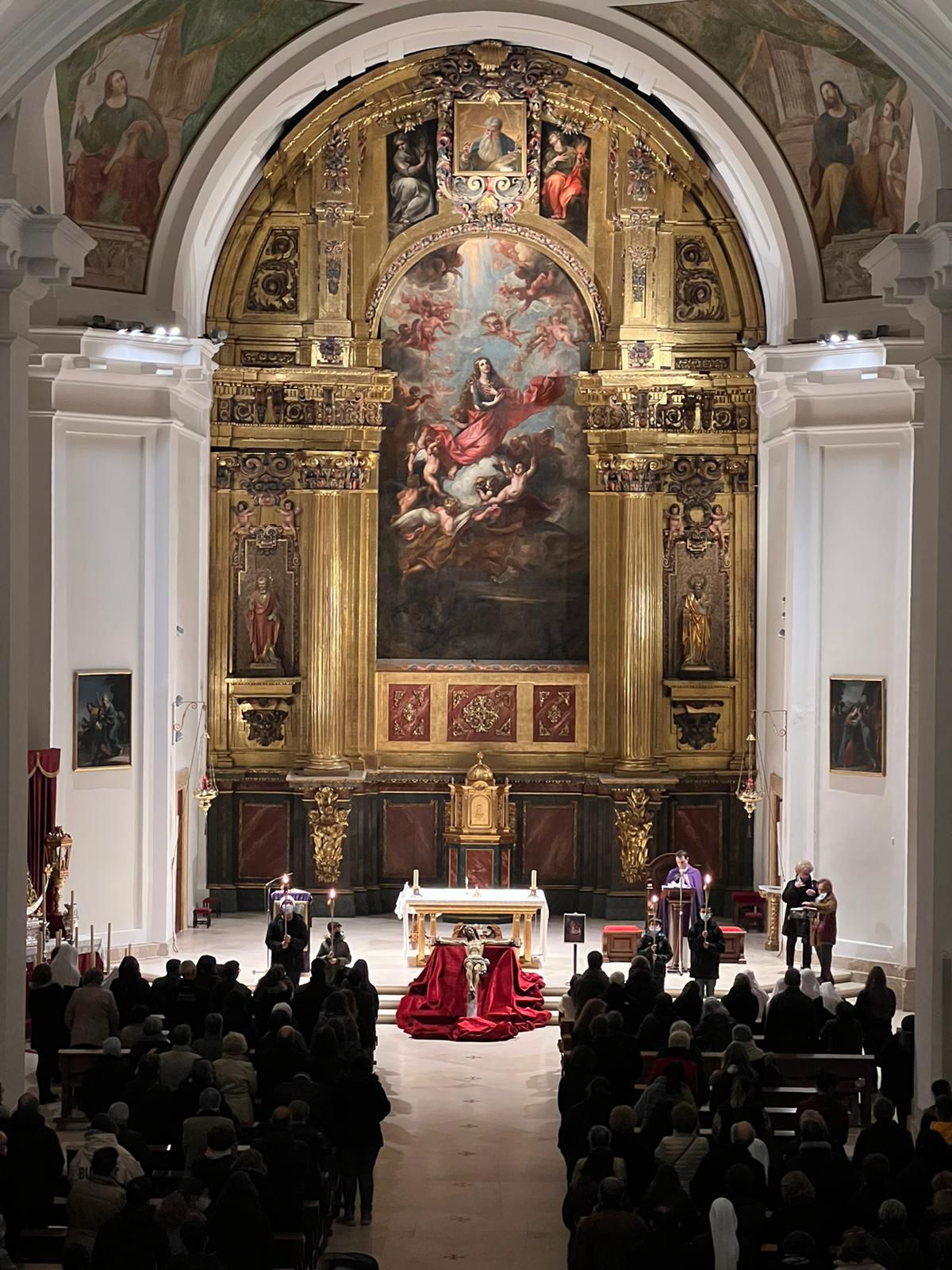 El Viacrucis, realizado por primera vez en la comunidad parroquial, estaba inserto en el proceso sinodal. Cada estación se ha rezado en un lugar diferente, preparadas desde distintas realidades de la parroquia por grupos de pastoral. Por ello, la octava estación «Jesús consuela a las santas mujeres» se preparó entre las Hermanas Hospitalarias y las Hermanas Oblatas.